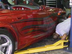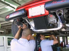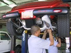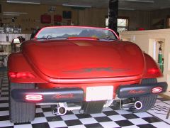 Although we liked the stock exhaust we decided that the MOPAR Dual Exhaust would be a nice touch. It would look more aggressive, sound better and add a little power. All good things. So on August 30, 2001, with the help of a few friends the exhaust was changed. |