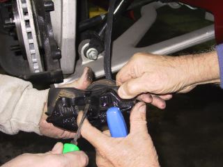 While installing the gears, we decided since the car would be up on a lift this would be a great time to replace the front brake pads with ceramic brake pads. It sure makes a difference in braking and no more brake dust, that's a plus all by itself.Below are some pics of the installation. |