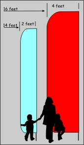 most popular banners are the MEGA banners; 4 feet wide on 16 foot poles -- twice as wide