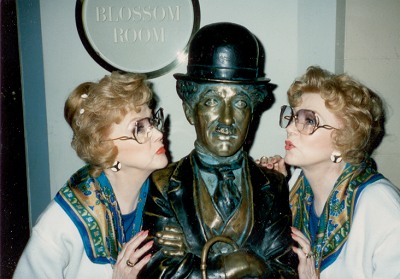 Lyn and Lee with Charlie Chaplin sculpture in the